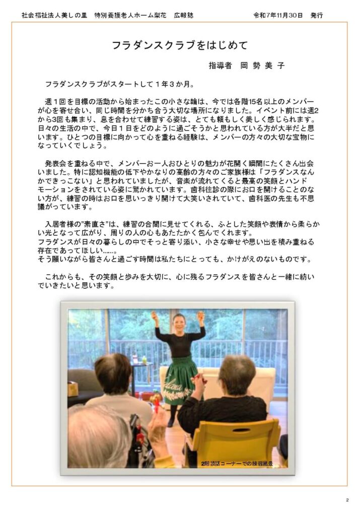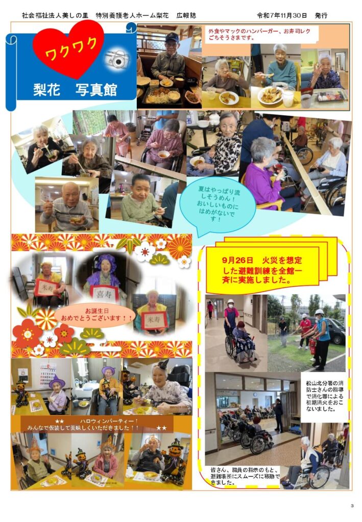 広報誌「愛情だより」 第2号 投稿日 2025年11月30日 更新日 2026年2月24日 著者 社会福祉法人美しの里 カテゴリー ブログ 広報誌「愛情だより」 第2号(PDF形式:2MB) 社会福祉法人美しの里 特別養護老人ホーム梨花 広報誌 令和7年11月30日 発行