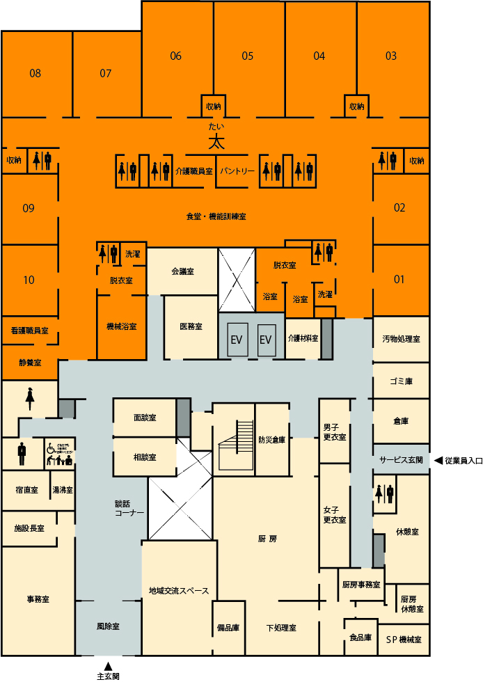 食堂、機能訓練室、共同生活室